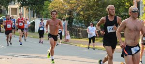 One of the unique features of the 10-miler is that a 5K starts on the same route ten minutes earlier. That makes for some interacting of the two races about a mile in as well as at the finish. There are serious runners and there are those wanted to try it.