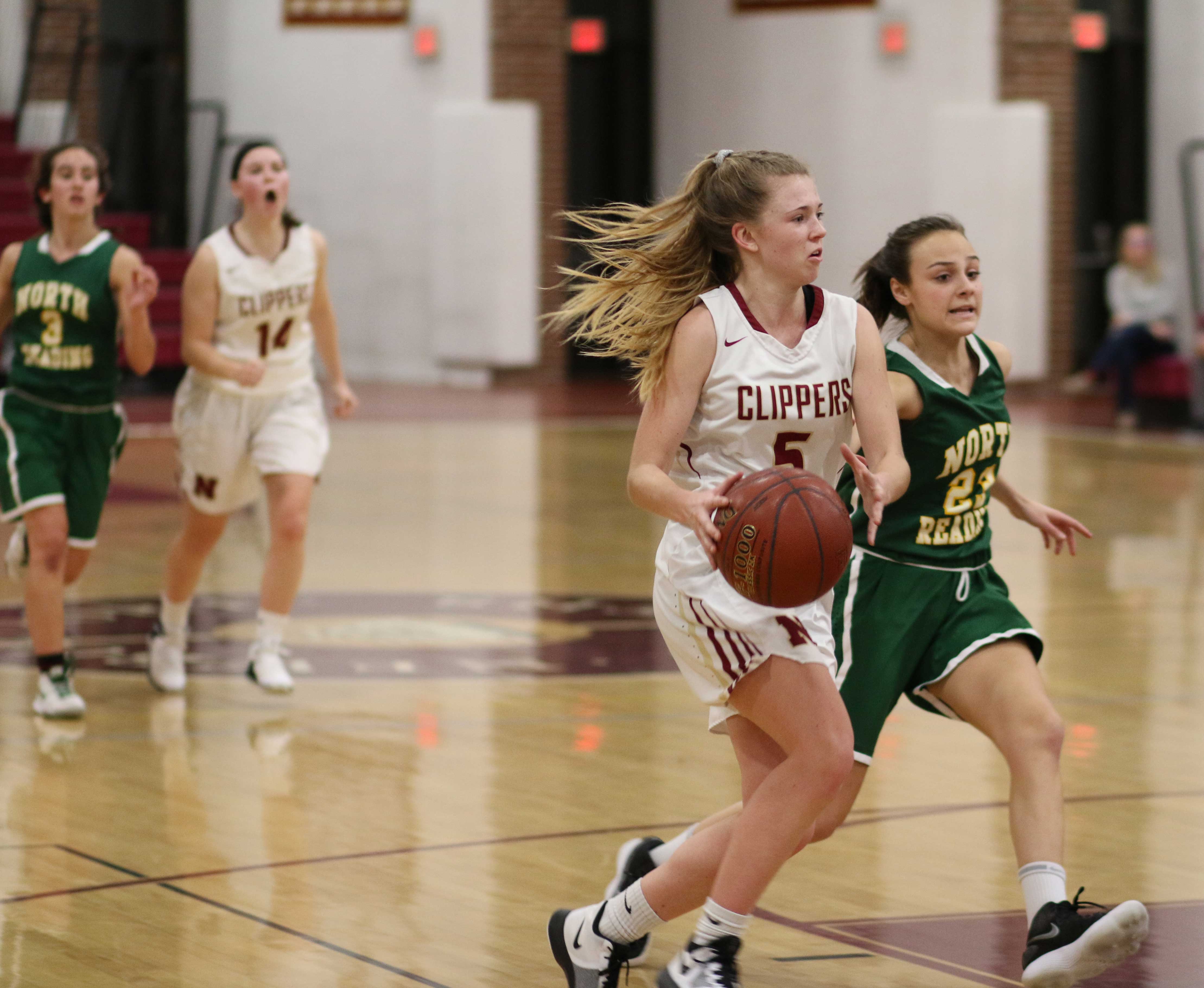 Sami Cavanaugh (15) led the Clippers.  Anna Hickman (12), Katie Hadden (11), and Meg Winn (11) were also in double figures.