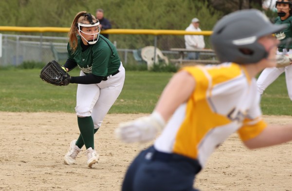 The big adjustment for Pentucket in this game was replacing play-every-inning catcher Ella Agocs. Freshman Jocelyn Bickford was given the assignment.
