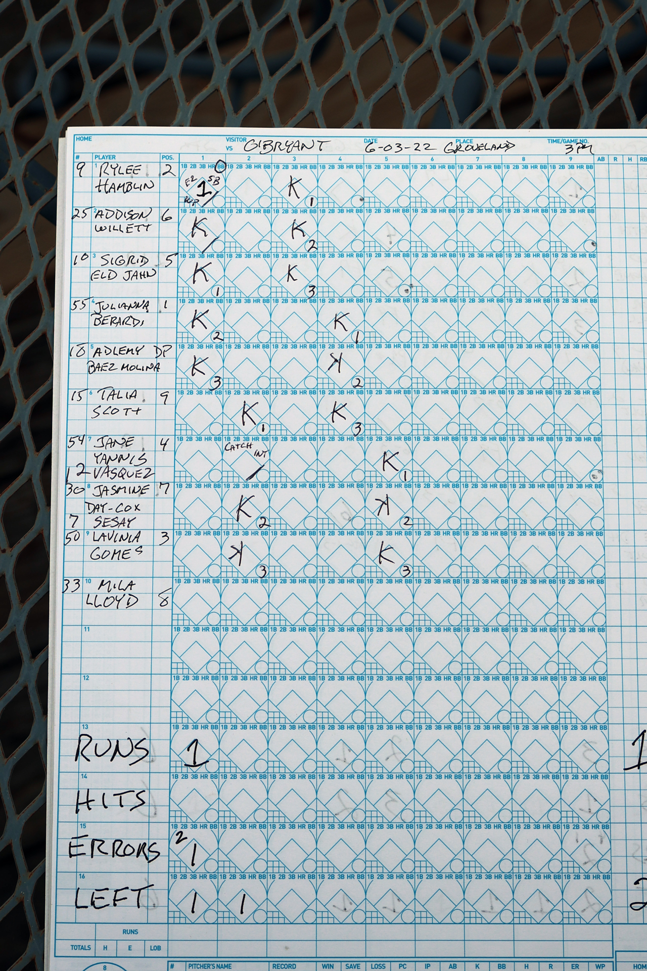 The Tigers manufactured a run in their first at-bats. Freshman Rylee Hamblin scored the O’Bryant run. Rylee walked, stole second, and reached third on a throwing error. She came home on a wild pitch.