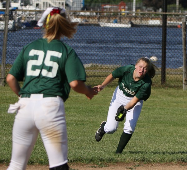 I’ve seen Pentucket senior Sarah Sargent twice and been impressed both times. Sarah can certainly play shortstop with good leadership skills and has a strong, accurate arm. Her hitting was equally eye-catching today. She had two doubles, and a single and drove across three Pentucket runs.