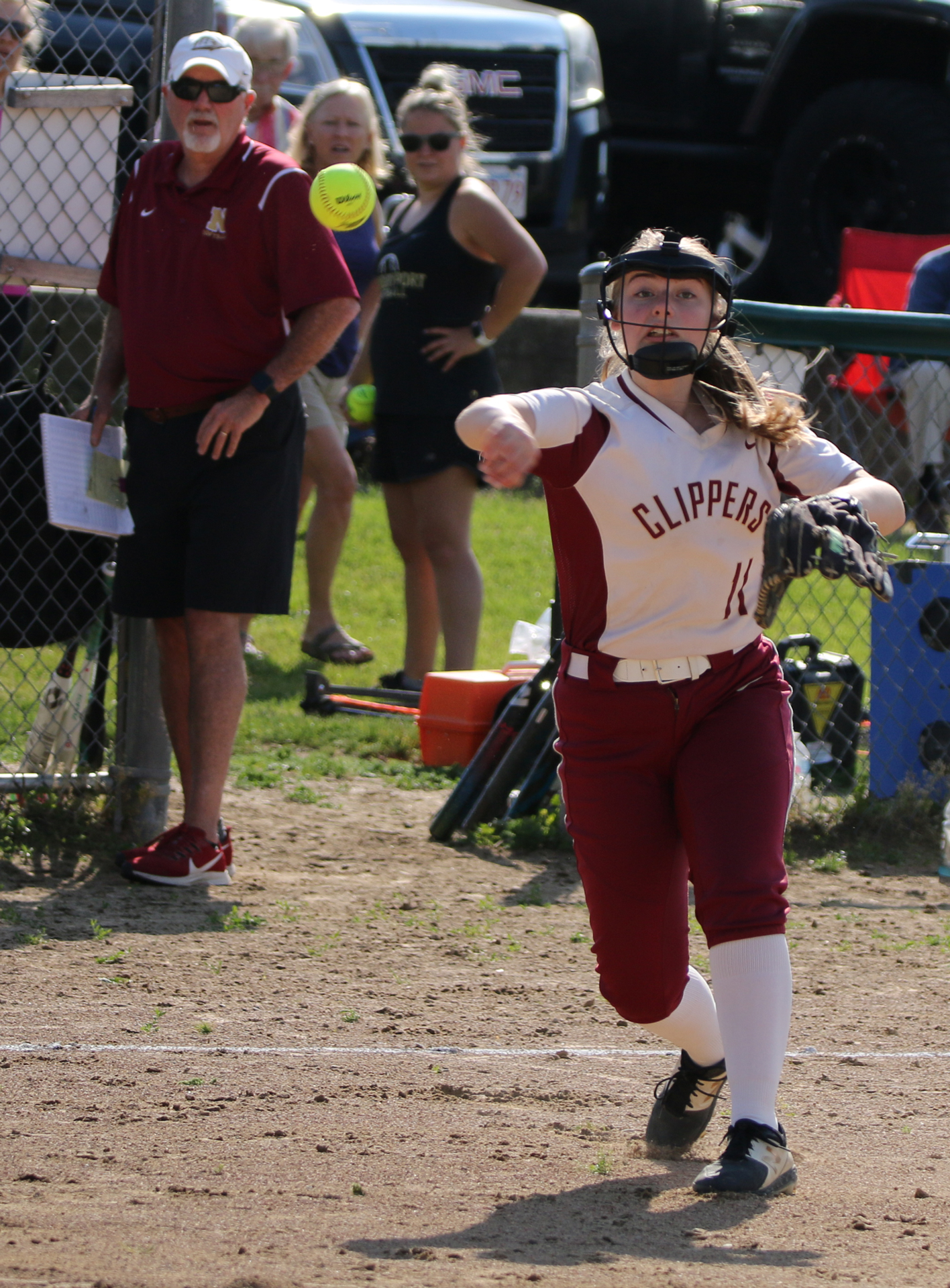 Half of the NHS hits came in the breakaway third inning. Twelve Clippers batted. Five batters in, Newburyport had only one run in and two outs. But Keira Dowell followed with a two-run single. After that, an infield error and three additional hits (Maddie McLeod, Cali Caponigro, Grace Habib) turned minimal damage into significant damage.