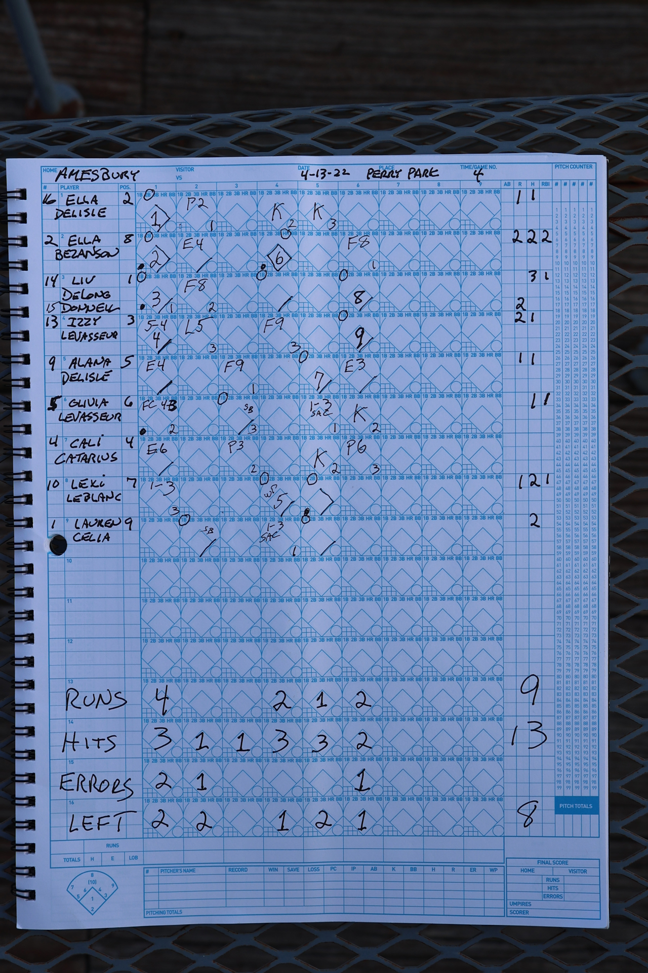 Amesbury turned three hits into four runs in the first inning. Two Newburyport infield errors prolonged the inning. Ella Bezanson, Liv DeLong, and Olivia Levasseur had the first-inning RBI’s.