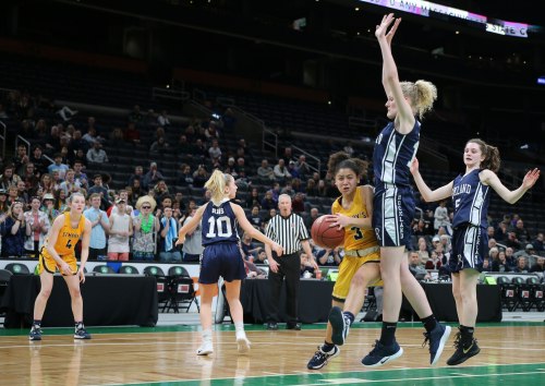 St. Mary’s used Rockland’s scoreless time thereafter to get a shot-clock beating three (Gabby Torres) and a Yirsy Queliz steal that the freshman turned into an old-fashioned 3-point play.