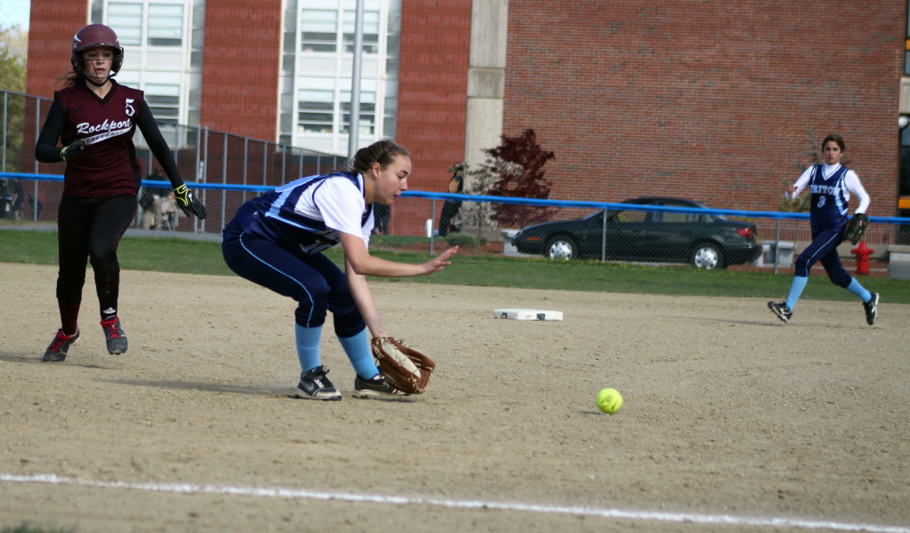 Triton’s starter (Cori Simons) didn’t fare as well when Rockport loaded the bases against her in the first inning with no outs. Passed balls brought in two runs (Hannah Lorden & Mollie Watson) and a fielder’s choice RBI by Kendra Adams scored Gabby Muniz with Rockport’s third tally.