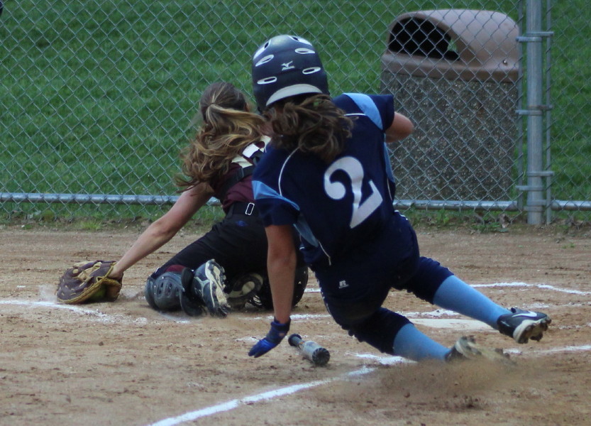 Big play in this game? Triton pitcher Mara Spears threw a wild pitch to the next batter (pinch hitter Ashley Casellini) and Vicki Allman tried to score. Catcher Julia Hartman retrieved the ball, tossed to Mara covering home, and Vicki was tagged out to end the inning. If Vicki had scored the game was over.