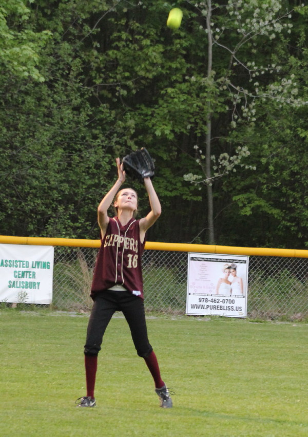 Newburyport put a single (Lauren Singer), RBI double (Ashley Hodge), and 2-run homer by Lea Tomasz together in the third inning to take a 3-2 lead. Lea’s home run rolled to the fence in left field.