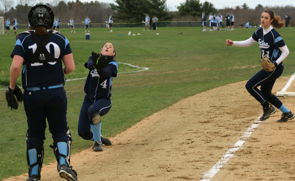 Triton’s second baseman Kylie Gilroy put on quite a show in the Pentucket seventh. The senior captain handled three tough chances flawlessly: (1) running catch on a popup, (2) speared a line drive to her right, and (3) came up with a hard-hit grounder to throw out Sydney Snow. Good stuff!