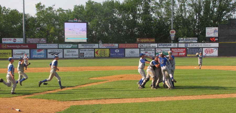 I asked an MIAA official afterwards about the umpire situation. He said that he had no idea where the scheduled umpires were. Could they have gone to the Lowell Spinners park??