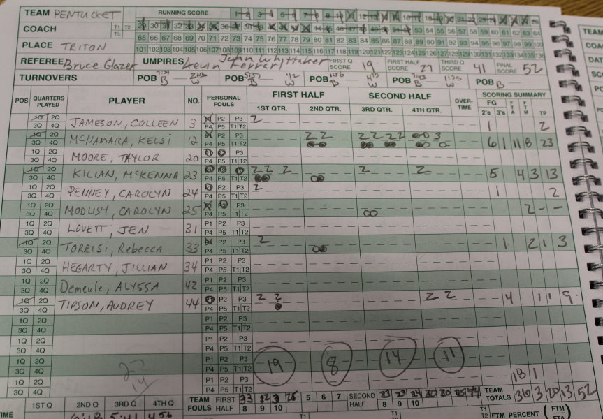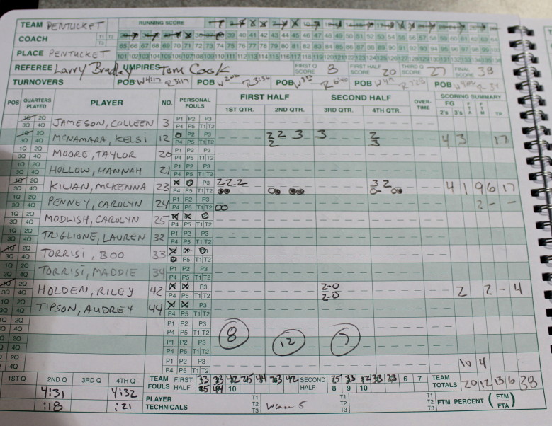 The two teams played on January 5th and Pentucket won, 32-20, at Triton. Boo Torrisi paced Pentucket with eleven points. Kelsi had only 7 with no three’s.