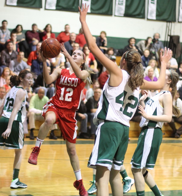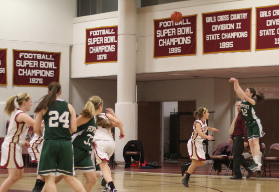 After a Pentucket timeout, the Sachems responded with six straight points (Kelsi free throw, Audrey Tipson layup, and Kelsi three) and erased any thought that an upset was possible.