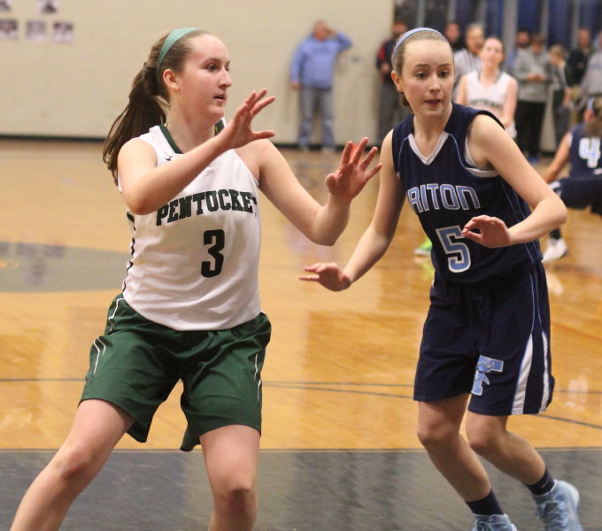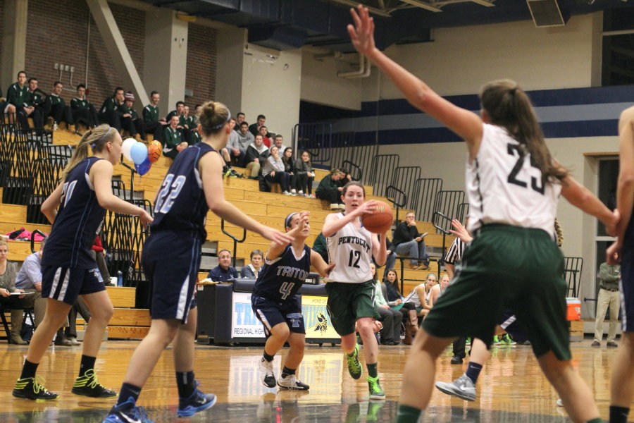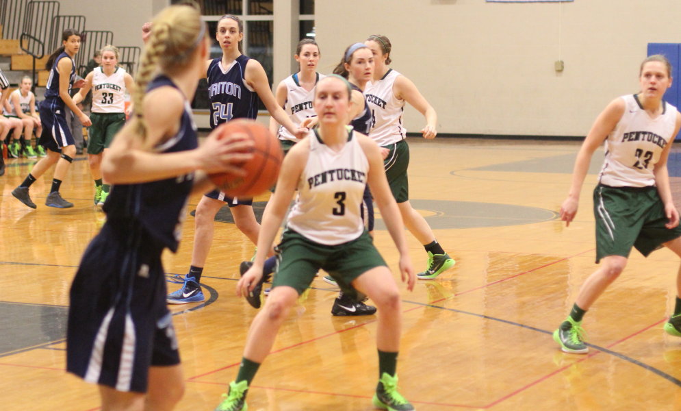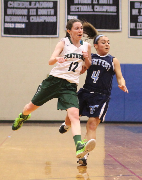 Pentucket gave the home team a full dose of full-court, trapping pressure and rolled to a 19-2 first quarter. Triton committed ten turnovers and the Sachems turned several of the miscues into instant baskets.