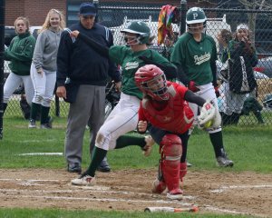 After Abby Aponas walked, Pentucket coach John Walsh brought in junior Mady Gatchell to face pinch-hitter Sage Dodier. The sophomore matched the Cloutier shot over RF and also ran the bases.