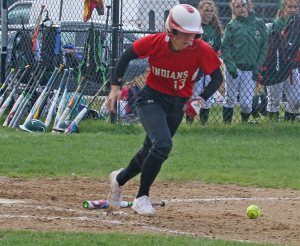 The Indians sent eleven batters to the plate in the deciding 4th and rattled seven hits around Perry Field including home runs by sophomores Kaylie Cloutier and Sage Dodier.