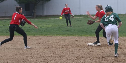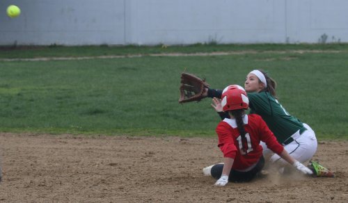 Maddie Napoli flips to 2B Abby Aponas to force Autumn West as Emma DiPietro watches from the outfield