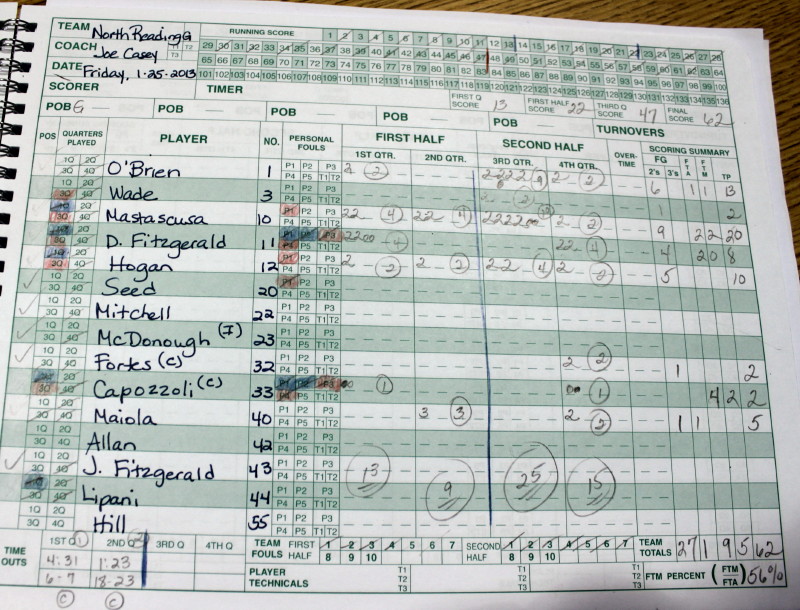 North Reading has been averaging close to sixty points per game and giving up forty points. Their shot blockers do not allow many in-close shots when opponents have to run half-court offenses.