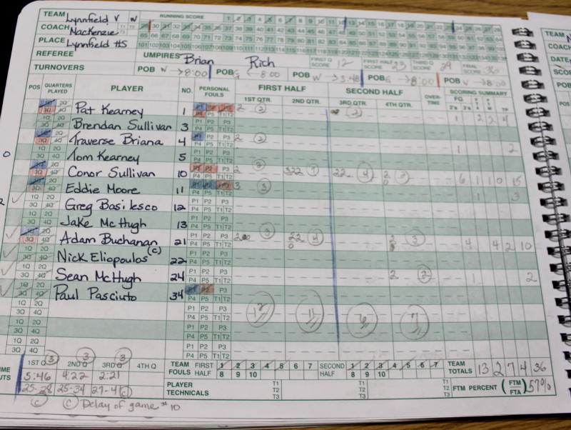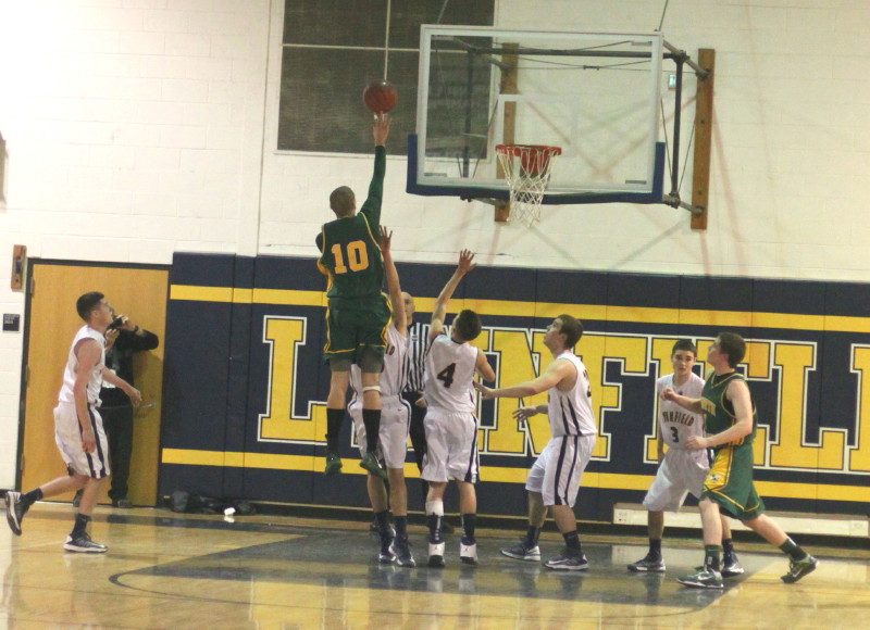 Freshman Adam Buchanan added ten points for Lynnfield. I would guess that he had at least that many rebounds.