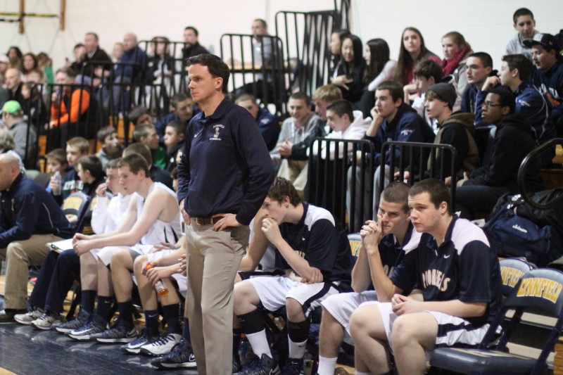2 ½ minutes after Lynnfield had the one-point lead, North Reading ran off eleven straight points and Coach Scott MacKenzie had burned two timeouts trying to find some way to stop what was happening. The Pioneers were down, 35-25.