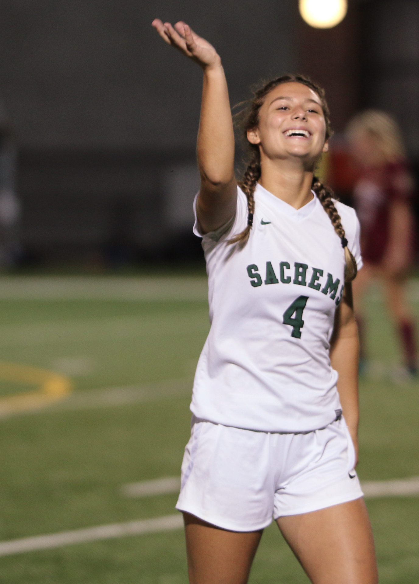 The physicality cost Pentucket (9-3-2) late in the first half. Newburyport sophomore Brela Pavao had possession in Pentucket’s box and was knocked down by a Sachem defender.