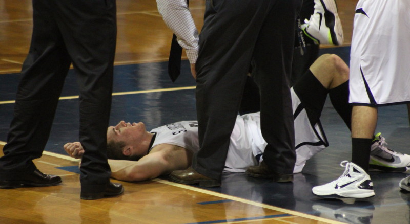 Senior Steve Haladyna had a memorable final home game (31 points) that was highlighted by fifteen points in the final period. Those points were consecutive and at their end the Eagles trailed only, 52-49, with two minutes left.