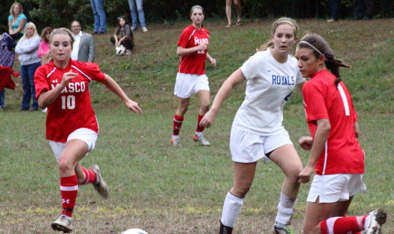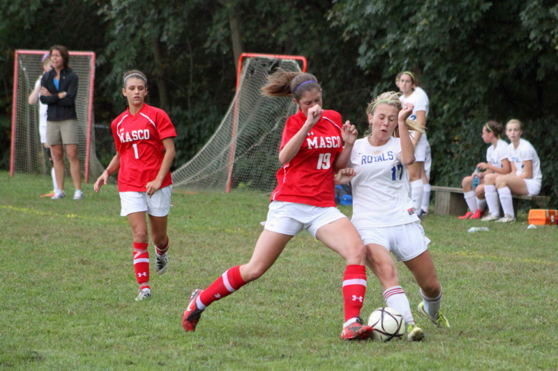 Katie Gorenflo did get in for a close one seventeen minutes into the second half but Masco goalie Nancy Palermo was able to smother the attempt.