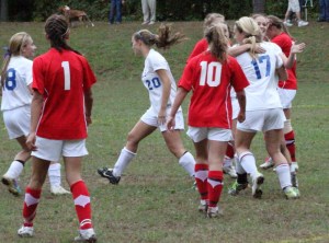 The sun was tough down one end for Lilly Donovan in the first half and for Nancy Palermo for part of the second half. The sun, however, was not a factor in any of the goals.