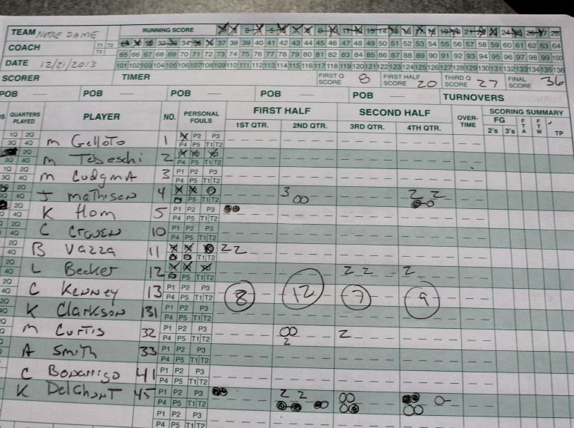 So with the Pentucket defense not turning up points, there was a need for some good outside shooting. Credit Notre Dame. They played a zone defense that took away most of the open outside shots of the Sachems especially those of Kelsi McNamara. Holding Kelsi to six points with no 3’s was a key to the Notre Dame victory.