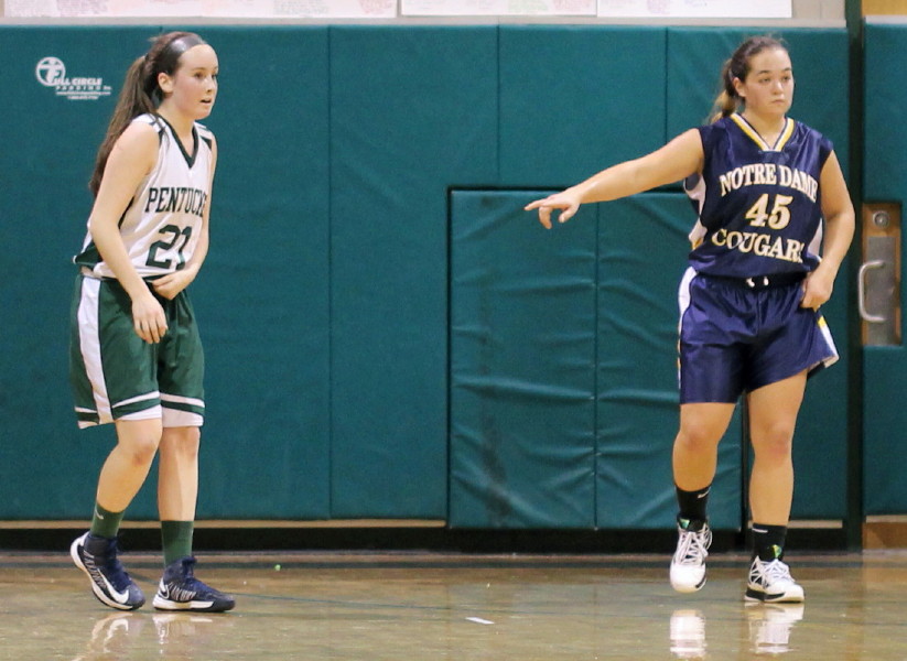 Pentucket (1-1) is a team that likes to press their way into points and are usually successful at it. Teams make mistakes in the backcourt and the Sachems run up points in a hurry. That consecutive point thing, however, just never happened against the Cougars (3-0) thanks to the ball-handling/passing skills of Kendra Delahunt (12 points) and Janey Mathisen (8 points).