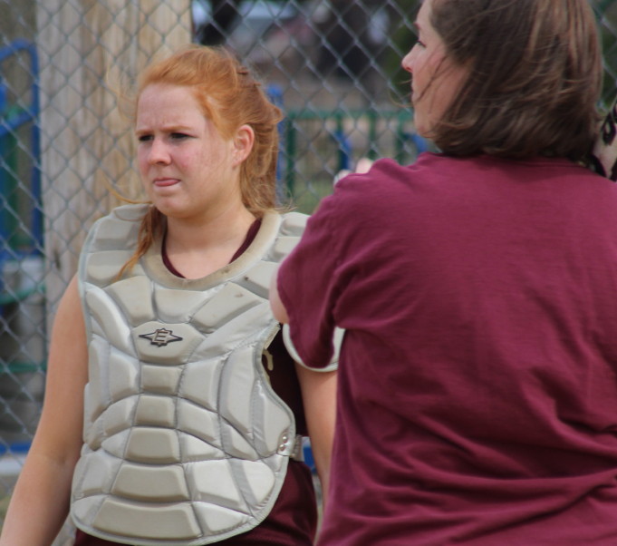 In that second inning, the Spartans loaded the bases with two hits and a walk with one out. Pitcher Rachel Cyr then bobbled Jess Martinello’s grounder and Vanessa VanBuskirk scored. With two outs and the bases still loaded, another grounder and this time the throw home was over catcher Amanda Schell’s head and two runs scored. Later a single (Molly Doyle) to center went through CF Sam Stone allowing yet another tainted run. All seven runs were unearned.