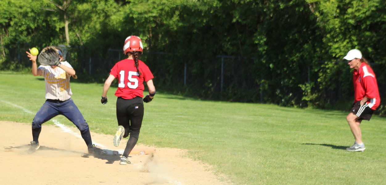That run loomed large in the Amesbury seventh after reliever Mia Nowicki walked in the Indians fifth run with two outs and had to face the Cape Ann League’s MVP Amanda Schell. Mia escaped by getting Amanda to ground out to second baseman Jen Mucciarone to end the game.