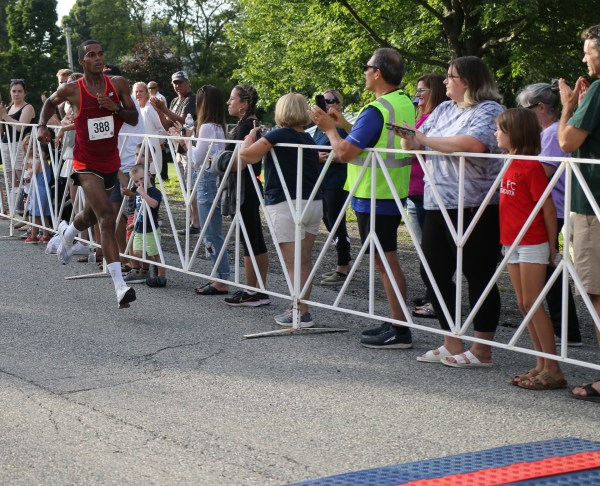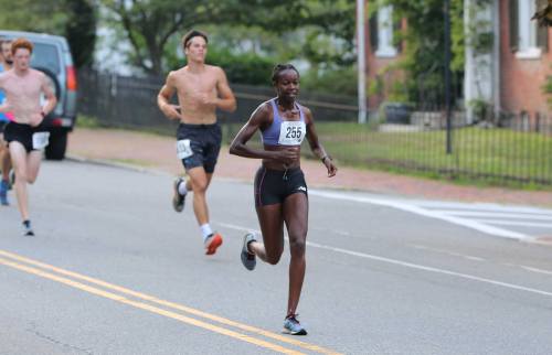 I have always positioned myself one mile from the start near the Cushing Museum. The top finishers always show themselves by that point. Case in point was today’s 5K. UMass Amherst graduate Jeffrey Seelaus was in front there. Same for Williams grad Yvonne Bungei among the women.