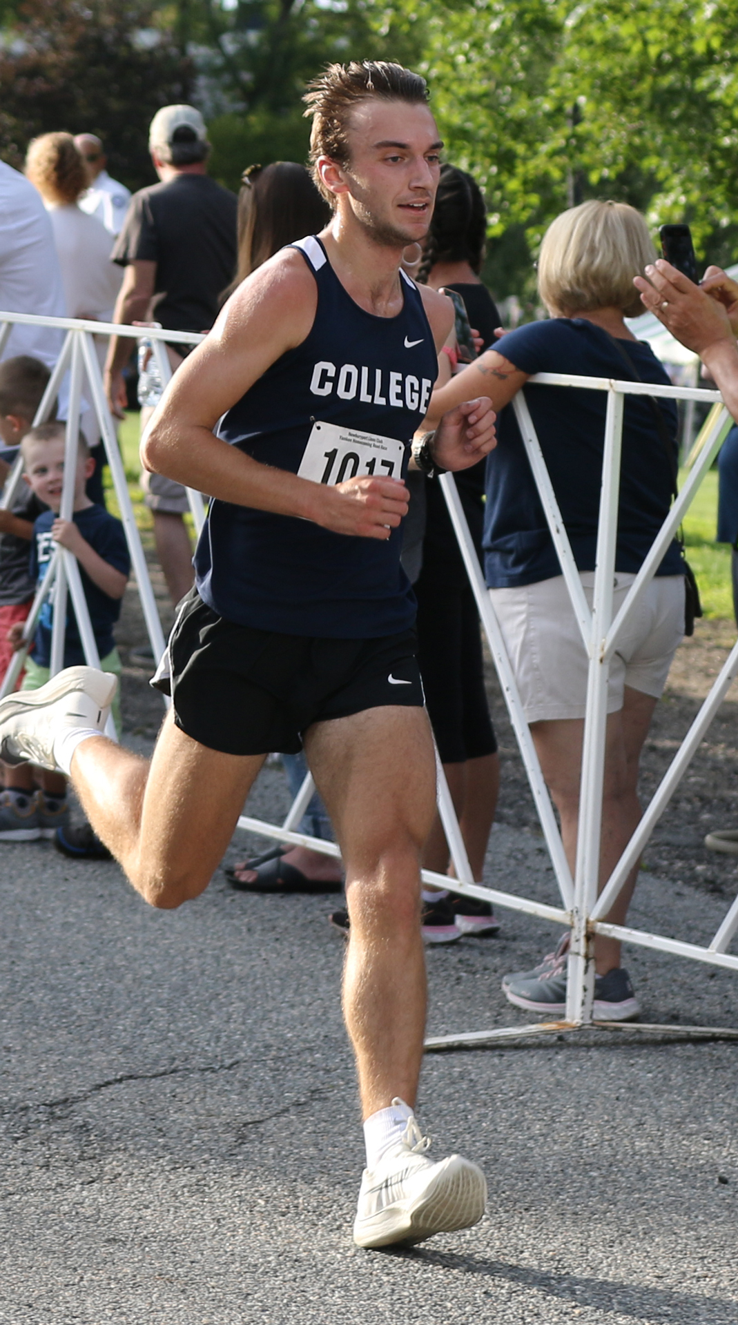 St. John’s Prep math teacher Nicholas Denari was poised behind Triton grad Bryan Popp at Cushing but moved on to take second at the finish.