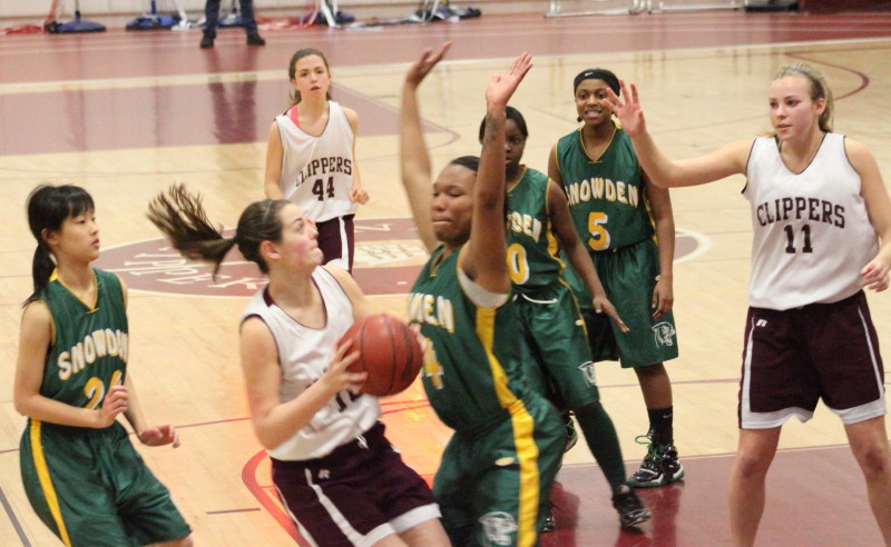 Jovanna Sandifer (6 points) scored the most for Snowden. She was a very fancy dribbler but at 5-4 got into trouble when she got close to the basket and nearer to Newburyport’s taller defenders.