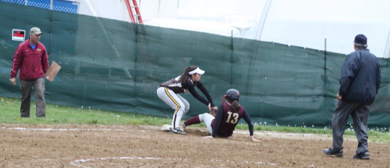 Before the inning ended, catcher Liz Glavin had a bad throw to second and Carolyn Lynch had bobbled a grounder.