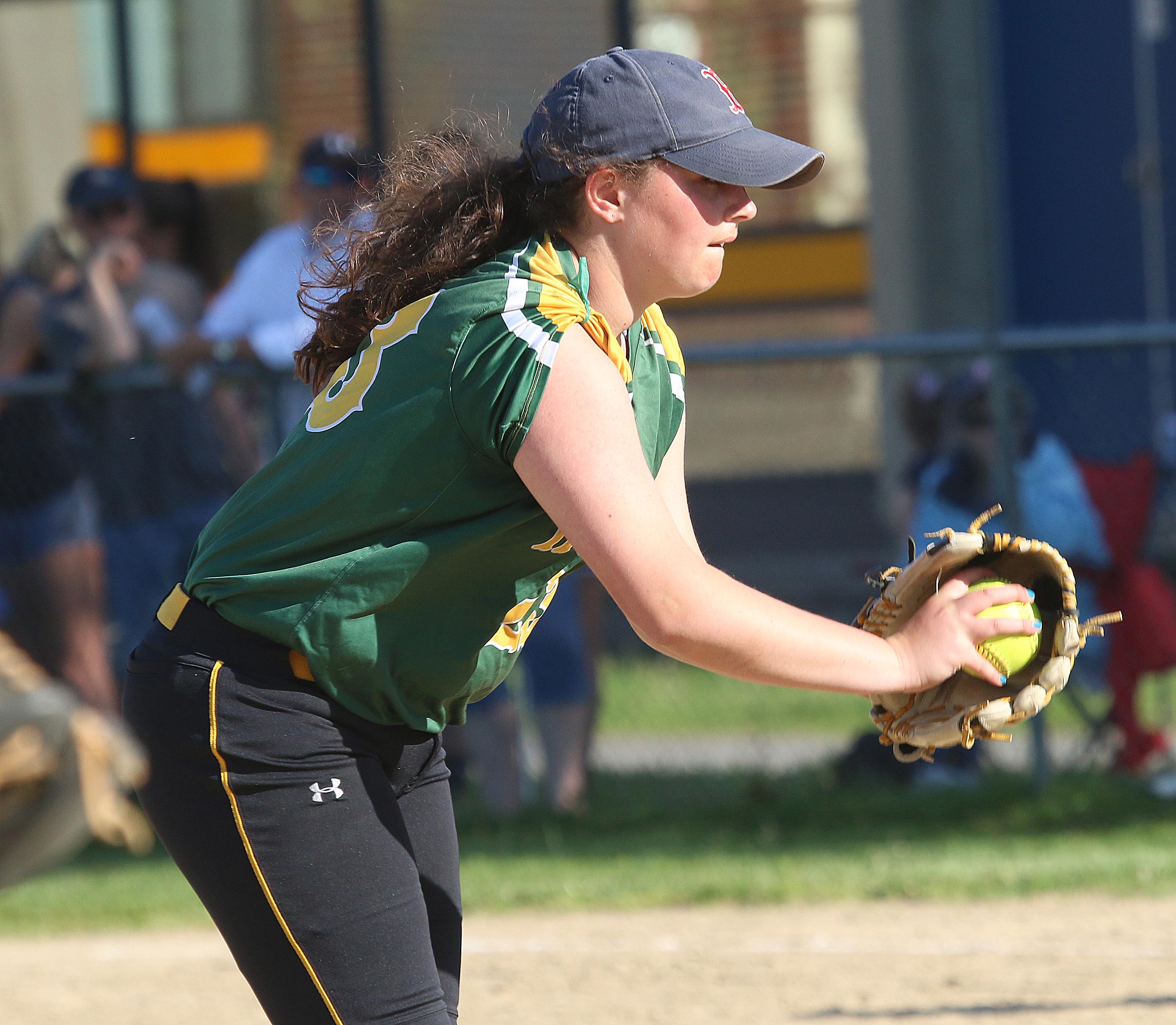 The home team looked to have the equalizer in their half of the 3rd but a terrific throw by RF Guiliana Peppe nailed Grace McGonagle at the plate.