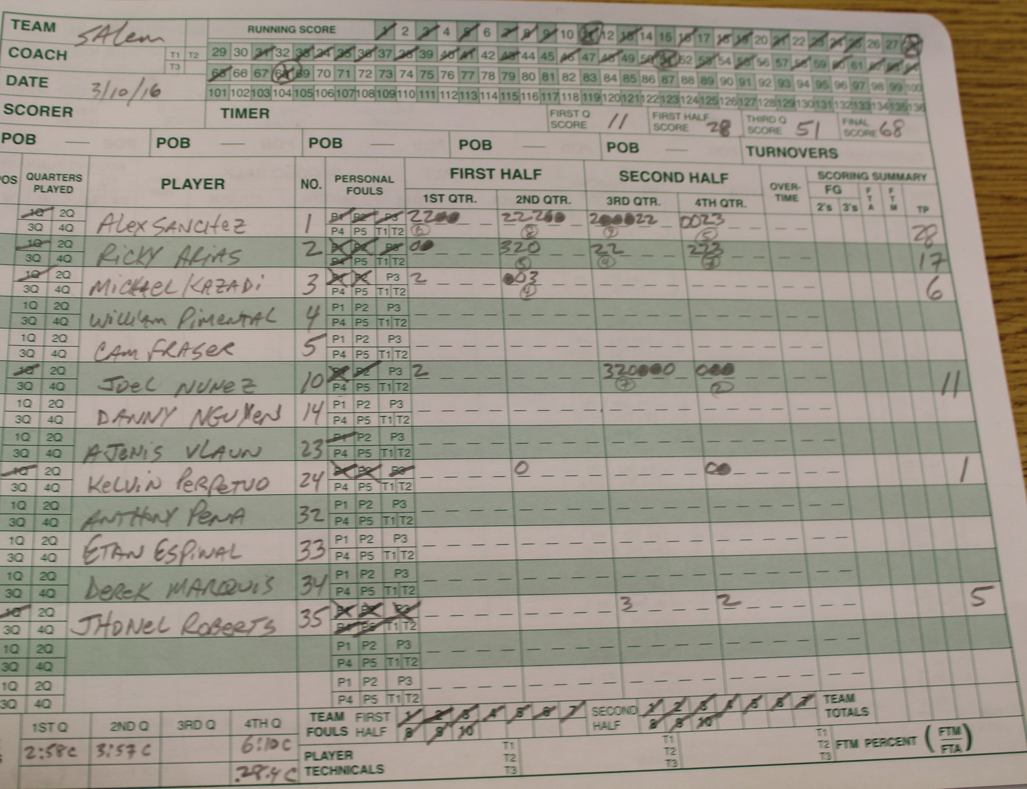 Salem hadn’t played in nine days and it showed. Besides the scary free throw shooting there were also twenty-one turnovers through three quarters.