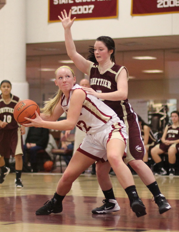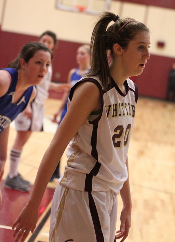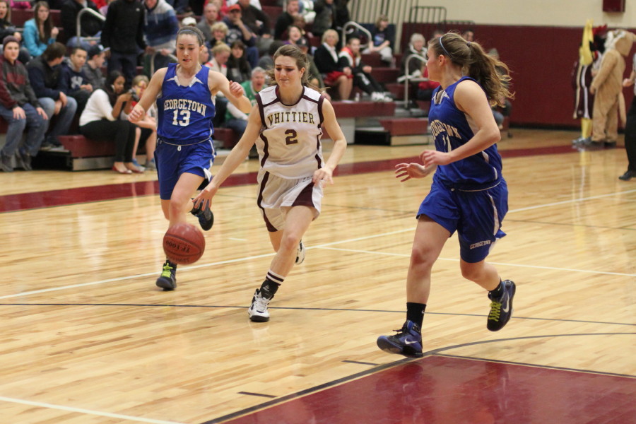 Trailing by ten, Whittier put their first ten-point run together. Two free throws by Andrea Terranova helped but the real damage was done by junior Kayla Riley notching two layups, a free throw, and a three to tie the score at 21-21 three minutes before the half.
