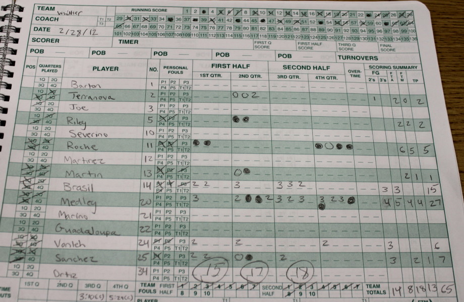Down by only two (53-51), again with plenty of time to score, the Clippers turned the ball over in the backcourt and fouled the stealer (Andrea Terranova). Andrea made both free throws.