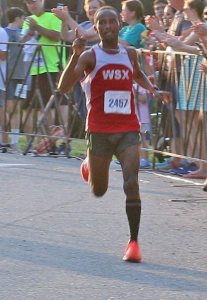 Abu Kebede Diriba, like Sam, was the only returnee from the top eight in the 10-mile race. Abu wasted little time taking this race over. He had a 20-yard lead at the one-mile mark and gave back some of that spread by race’s end but he could well have been coasting in the late stages. Abu (connected to the West Side Running Club in NYC) was second in 2016. He was over a minute slower this time around but the competition probably had a play in it.